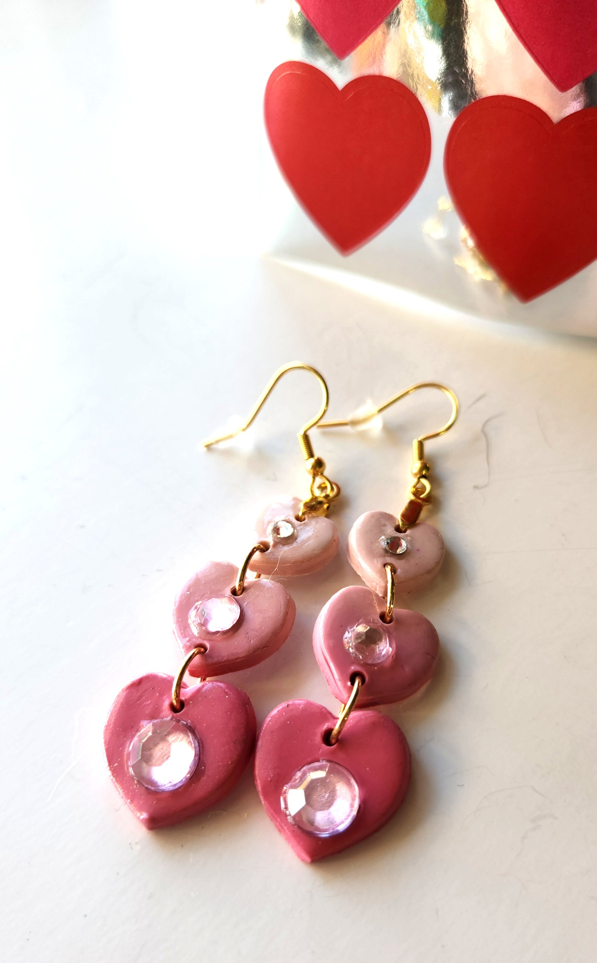 These earrings are a triple threat. Featuring three graduated hearts, each adorned with a sparkling crystal, they're perfect for adding some love and sparkle to any outfit.